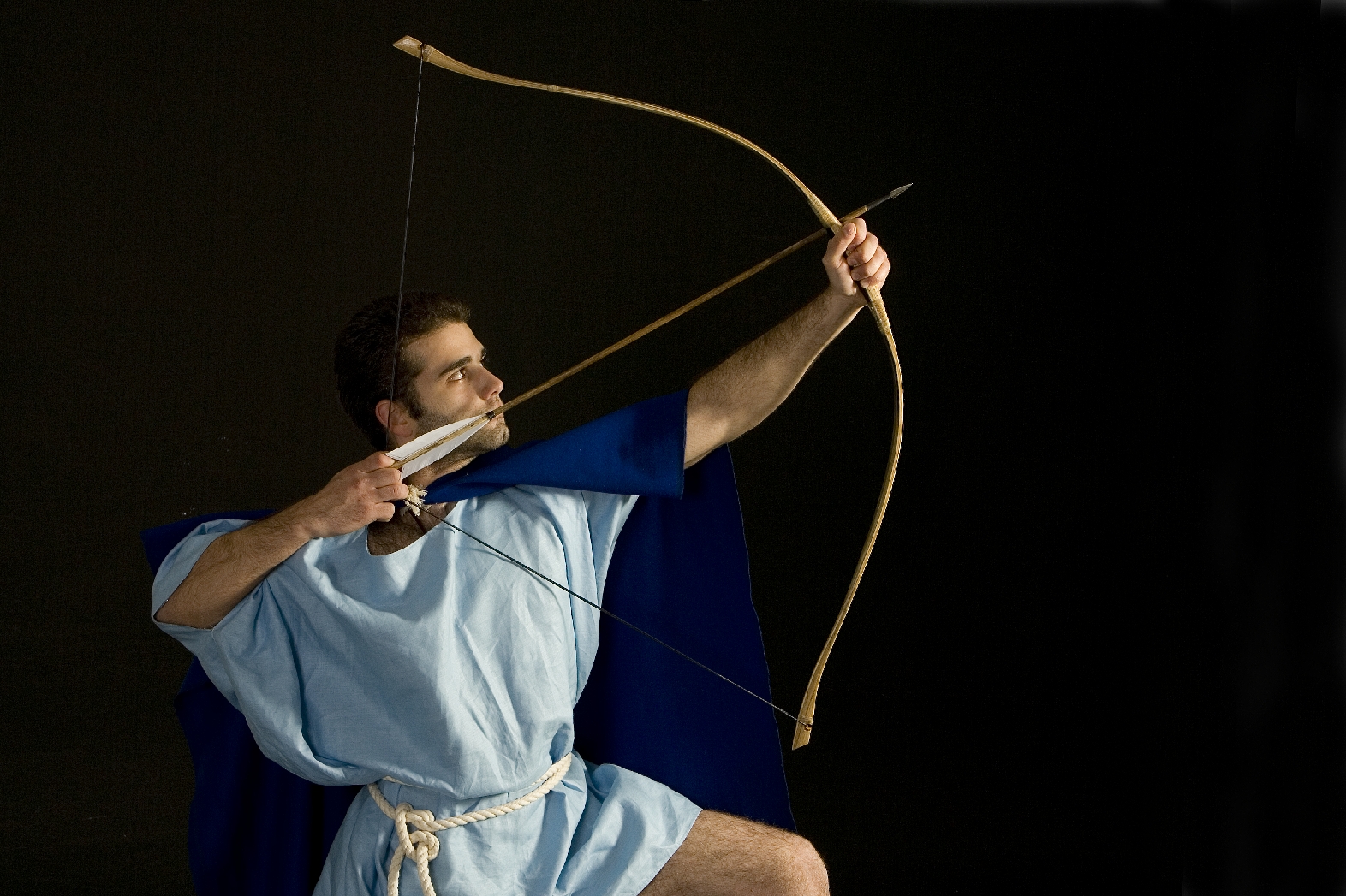 Φωτογραφία: Αναπαράσταση Έλληνα Τοξότη της Κλασσικής Περιόδου με Σύνθετο Τόξο σε στάση βολής μακρινής απόστασης. Ο «Μεσογειακός» τρόπος τραβήγματος της χορδής με τα τρία δάκτυλα υπάρχει αποτυπωμένος σε πληθώρα αρχαίων ελληνικών αγγείων, φωτογραφία του Ανδρέα Σμαραγδή. Σύλλογος Ιστορικών Μελετων ΚΟΡΥΒΑΝΤΕΣ