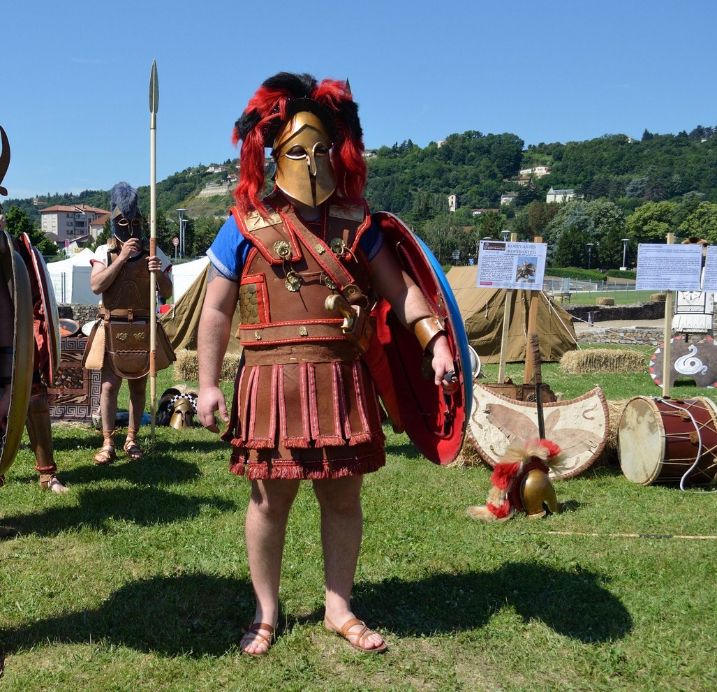 Φωτογραφια: Αρχαιολογικο Φεστιβάλ «Gallo-roman Days» 2012, Οπλίτης Κλασικής Περιόδου με ενισχυμενο Δερματινο θώρακα . Σύλλογος Ιστορικών Μελετών ΚΟΡΥΒΑΝΤΕΣ
