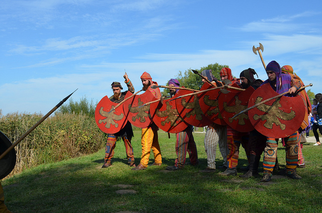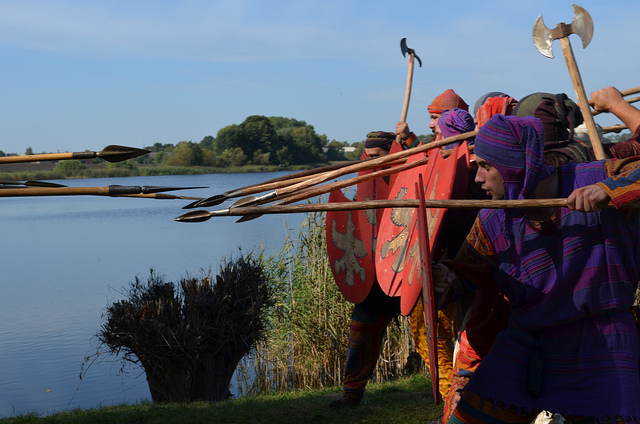 Φωτογραφία: Σκηνή μάχης μεταξύ Τοξότου και Οπλίτου . Αρχαιολογικό Φεστιβάλ Biskupin 2011 / Πολωνία . Σύλλογος Ιστορικών Μελετών «ΚΟΡΥΒΑΝΤΕΣ»